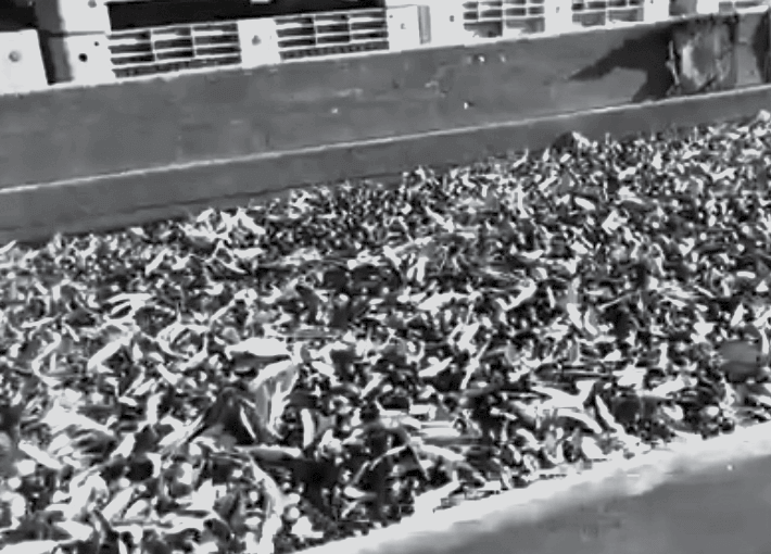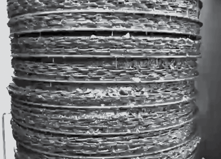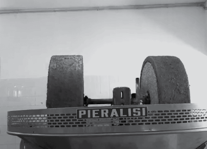 The olives are crushed into a paste, pits and skin together to ensure the highest possible
